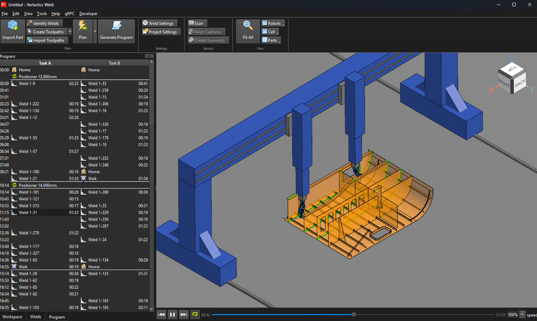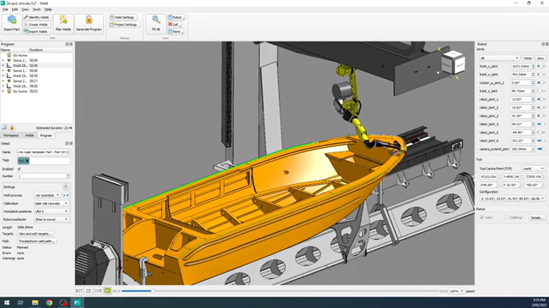 Once the welds have been planned, click the Generate Program button to create a robot program you can download to your robot controller for verification and execution.