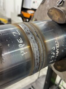 The weld required approximately 45–50 minutes of arc time with a total of 12 passes. Radiography again confirmed compliance, with minor porosity indications (0.073–0.097”) well below the maximum permissible 0.125”.